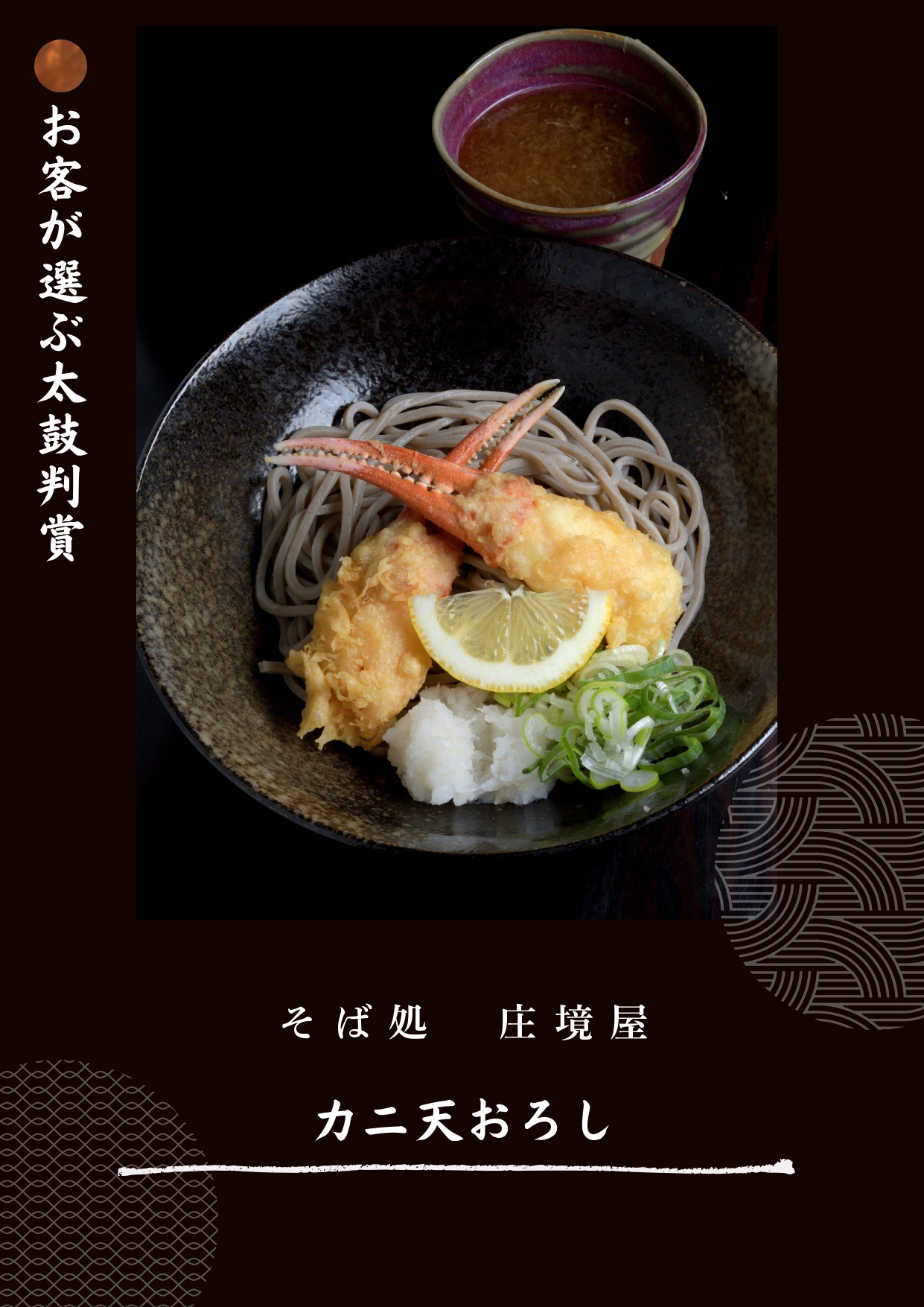 独創的な創意工夫が光る見た目の美しさはもちろん、老舗が守り抜く奥深い味は食べるものの五感を心地よく刺激します。技術と伝統が結実した、まさにグランプリにふさわしい「至高の蟹そば」となりました。