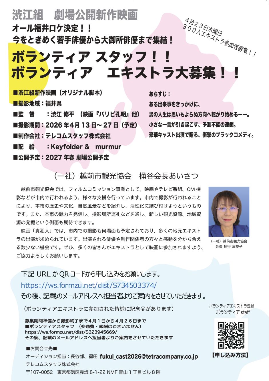 ご興味のある方は、下記チラシのQRコード(エキストラ登録)からお申込みください。